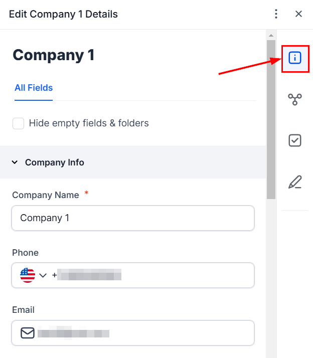 The Details section enables you to efficiently update company information. After making the necessary changes, click the Save button to preserve the updates.