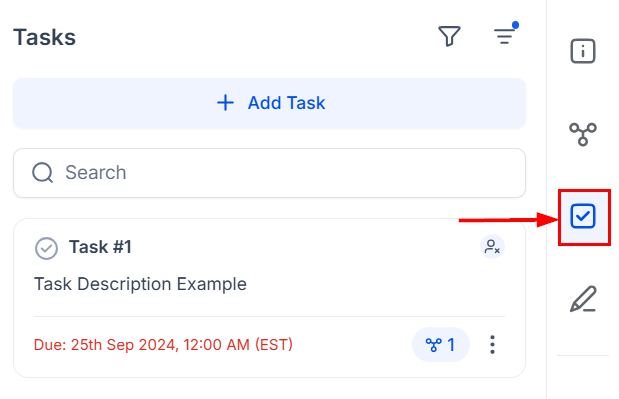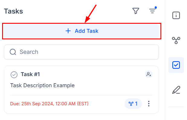 Filter the tasks by the assigned team member, status, or the associated contact, or sort the tasks by their due date or created date by selecting the appropriate options.