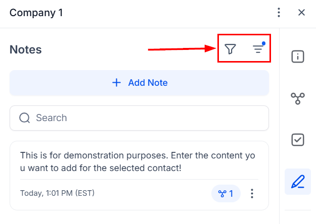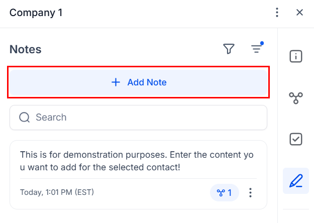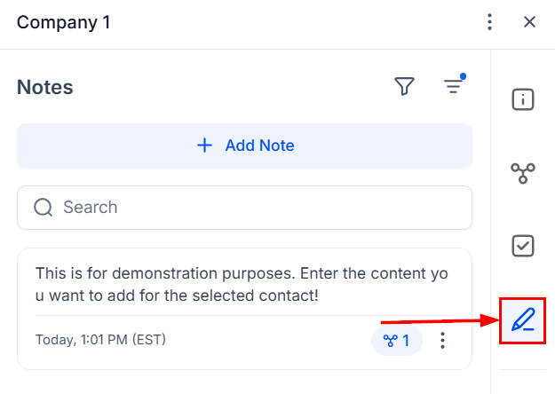 View, edit, and add notes to contacts associated with a company in the Notes tab.