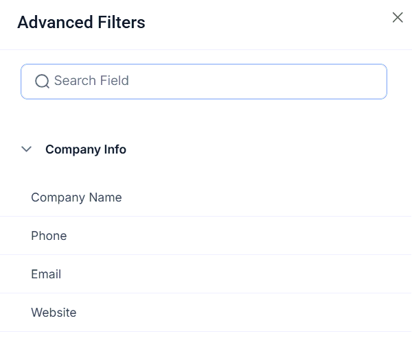 After selecting an option from the list, ensure that you choose the correct operator and input the value in the provided field. Additionally, you may add other filters to further refine the list. Click the “And” button to check for companies with all the selected requirements, or the “Add Filter” button to check for companies with any of the requirements.