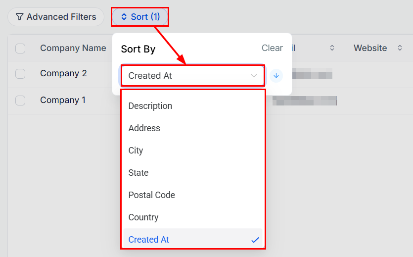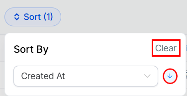 Click the Clear button to reset any applied sorting options, or select your preferred display order (ascending or descending) by clicking the arrow.