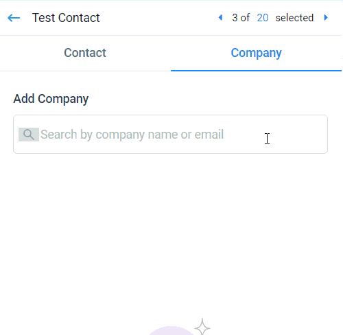 Go to the Company tab within the contact card and locate the relevant company using the search option. Select the desired contact, then click apply to add the contact accordingly.