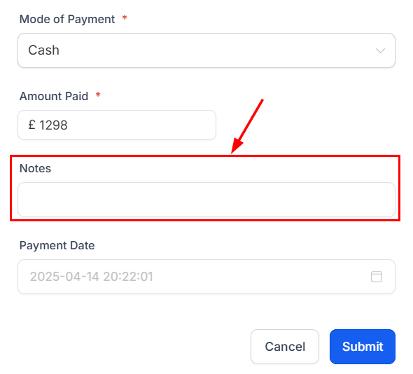 You can then include important information about the customer or additional details on the transaction in the notes field.