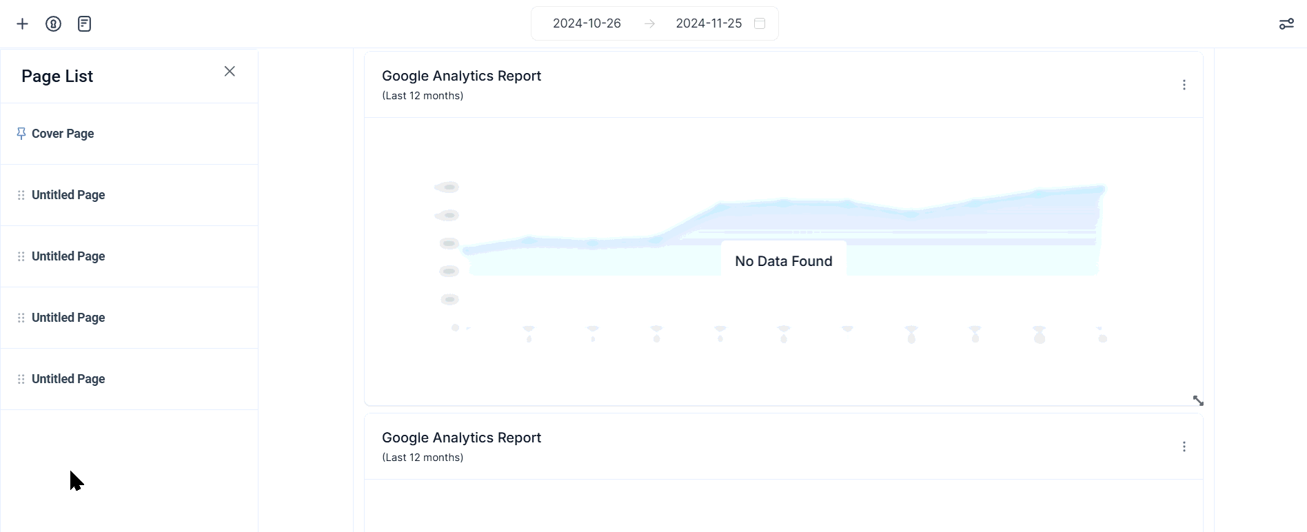 With the page list, you can reorganize or delete sections of the report. To move a page, drag it into the new position.
