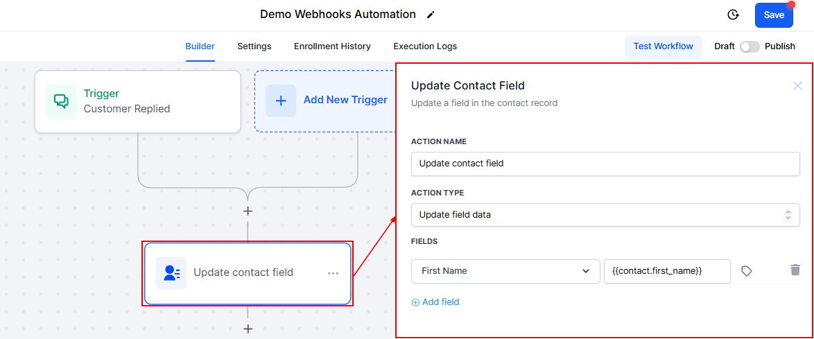 Once the missing information is updated, manually move the contact to the next step in the workflow, ensuring they proceed through the remaining actions as intended.