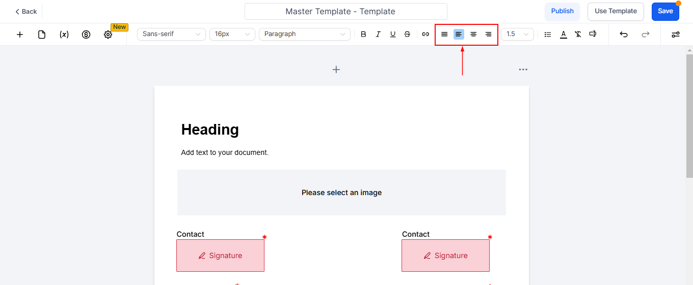 Control the positioning of text and other elements within your email. You can align content to the left, center, or right, depending on your design needs.