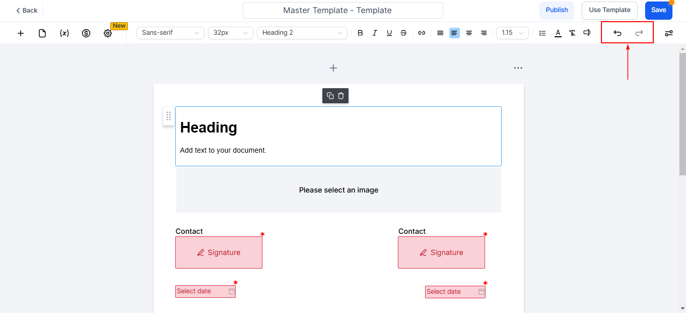 - Redo: Reapply the last change that was undone, restoring the document to the most recent version before the undo action.