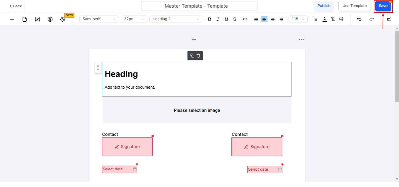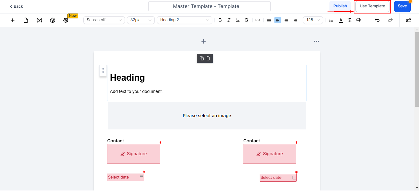 Click the “Use Template” button to convert the document into a draft template, which can then be distributed to the intended recipients.