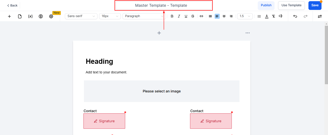 Assign a name for your template within this field. This name can be updated at any point to accurately reflect the purpose of the document.