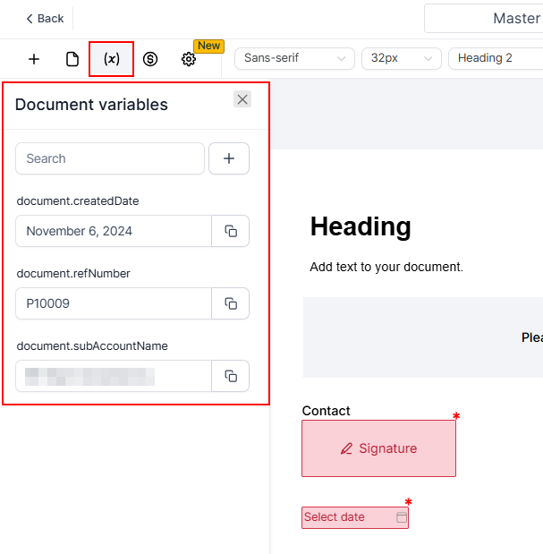 Access and manage the variables linked to your document. Document variables serve as placeholders within the document, automatically replaced with actual values upon execution. These variables provide dynamic content control, making them essential for templating and automation processes.