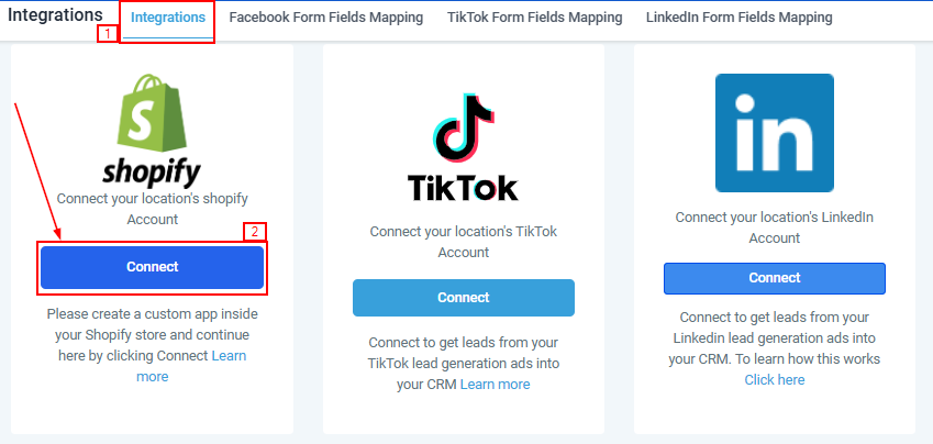 Navigate to Settings > Integrations > Shopify and Click on Connect.