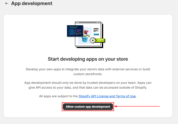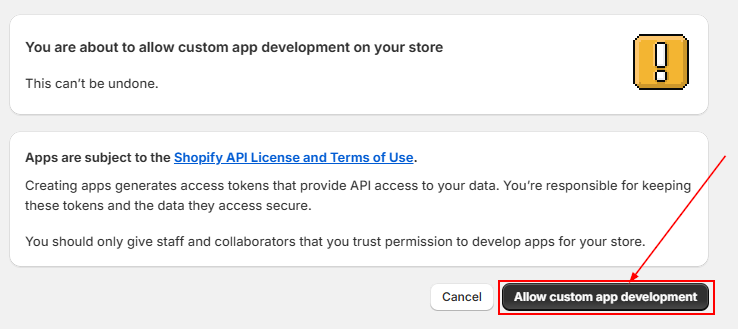 NOTE: Once custom app development is enabled in a store it cannot be undone.