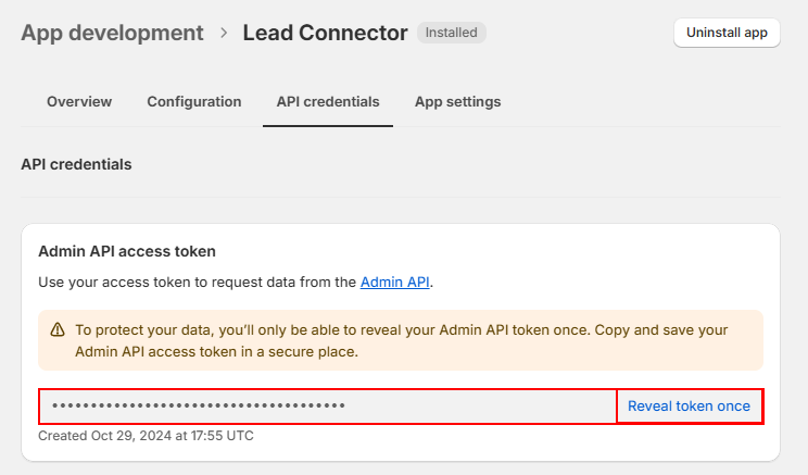 Then move to the API Credentials tab and, click on the Reveal token once and copy it for pasting into your CRM.