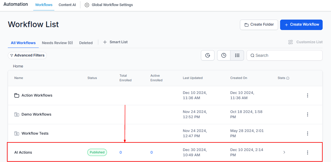To set up the "End IVR Call" action in your workflow, select the workflow containing the IVR action you want to end.