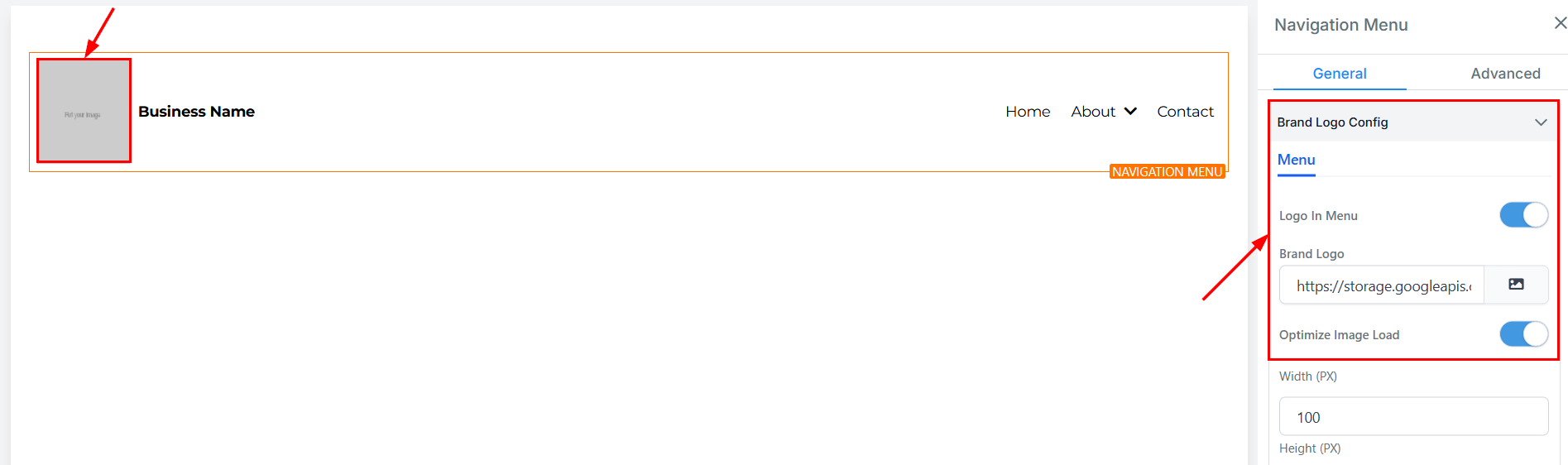 You can start by adding a navigation menu to facilitate seamless access to key sections of your site for visitors. Additionally, you have the option to incorporate your logo into the navigation menu by selecting the desired image from your media library.