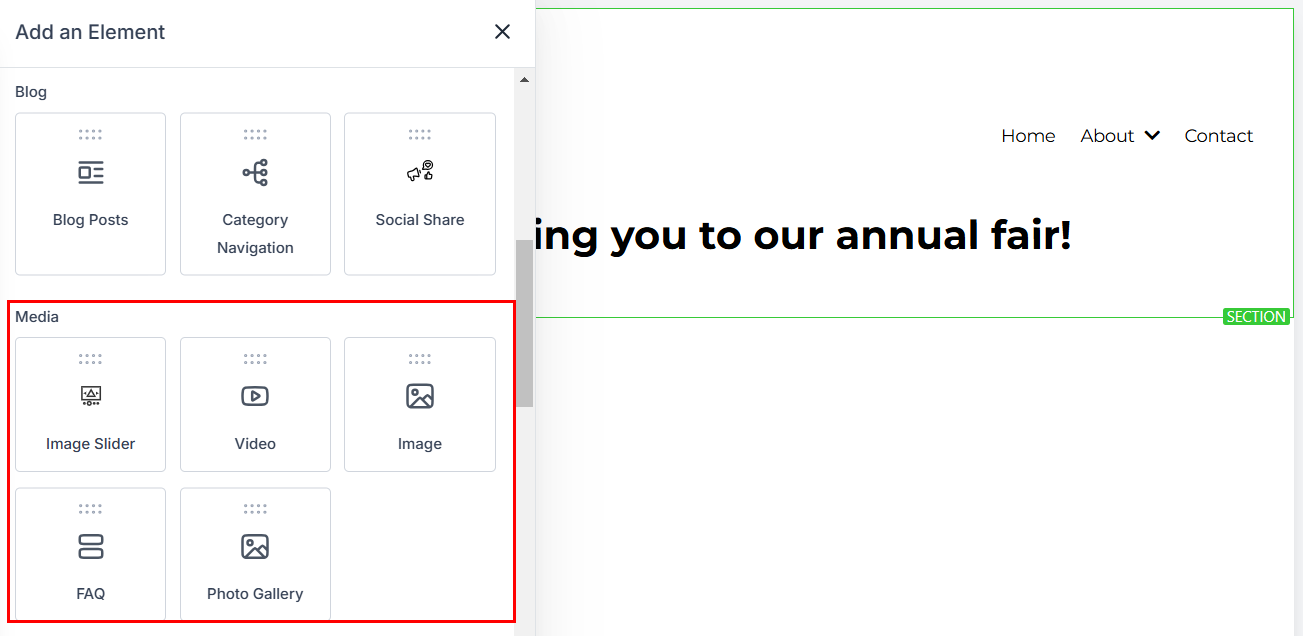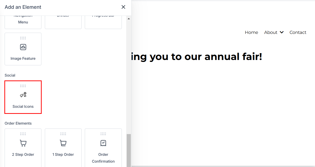Next, include the Social Icons element for visitors to learn about the various ways they can connect with you!