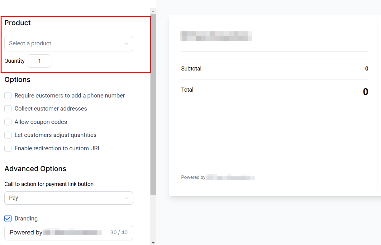Next, choose the product you wish to sell in the link builder and specify the quantity. This step is crucial for setting up the correct payment amount for your customers.