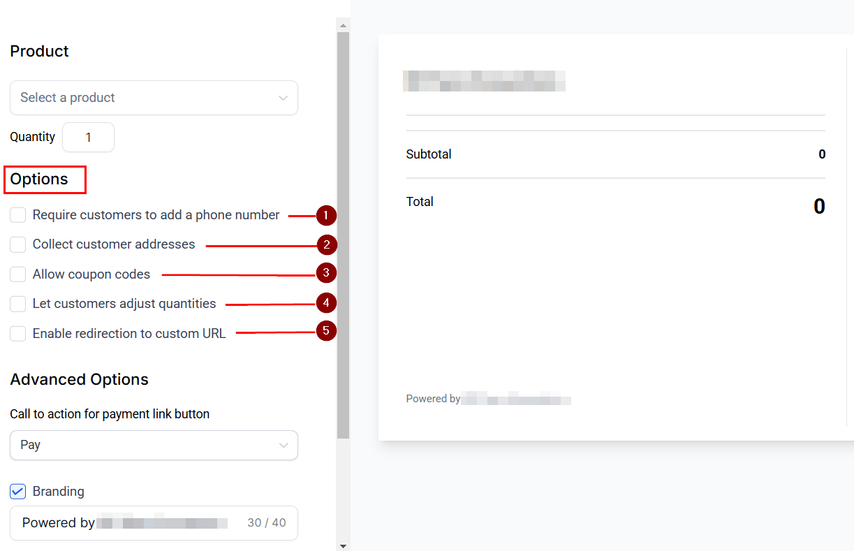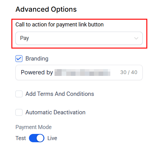 Dive into the 'Advance Options' to select the button type that best fits your requirements. This customization allows you to align the payment link with your brand and sales strategy.