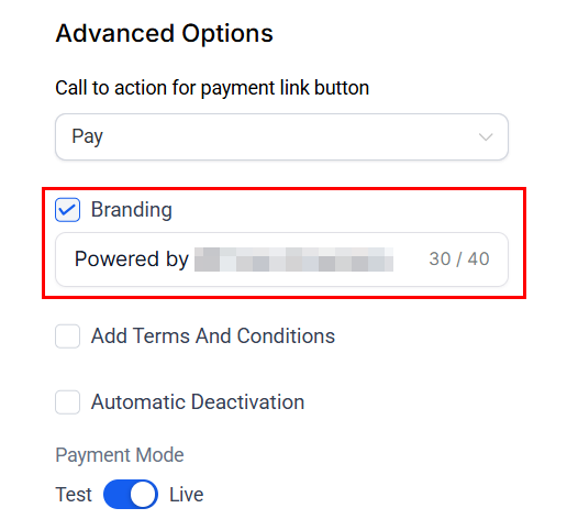 Enable the Branding Option to reflect your organization’s branding, providing a cohesive and professional user experience. By activating this option, you can enhance trust and recognition for your customers when accessing the link.