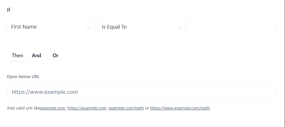 You will be presented with options to redirect users to different URLs, display custom messages, show or hide fields, or disqualify leads based on their answers.