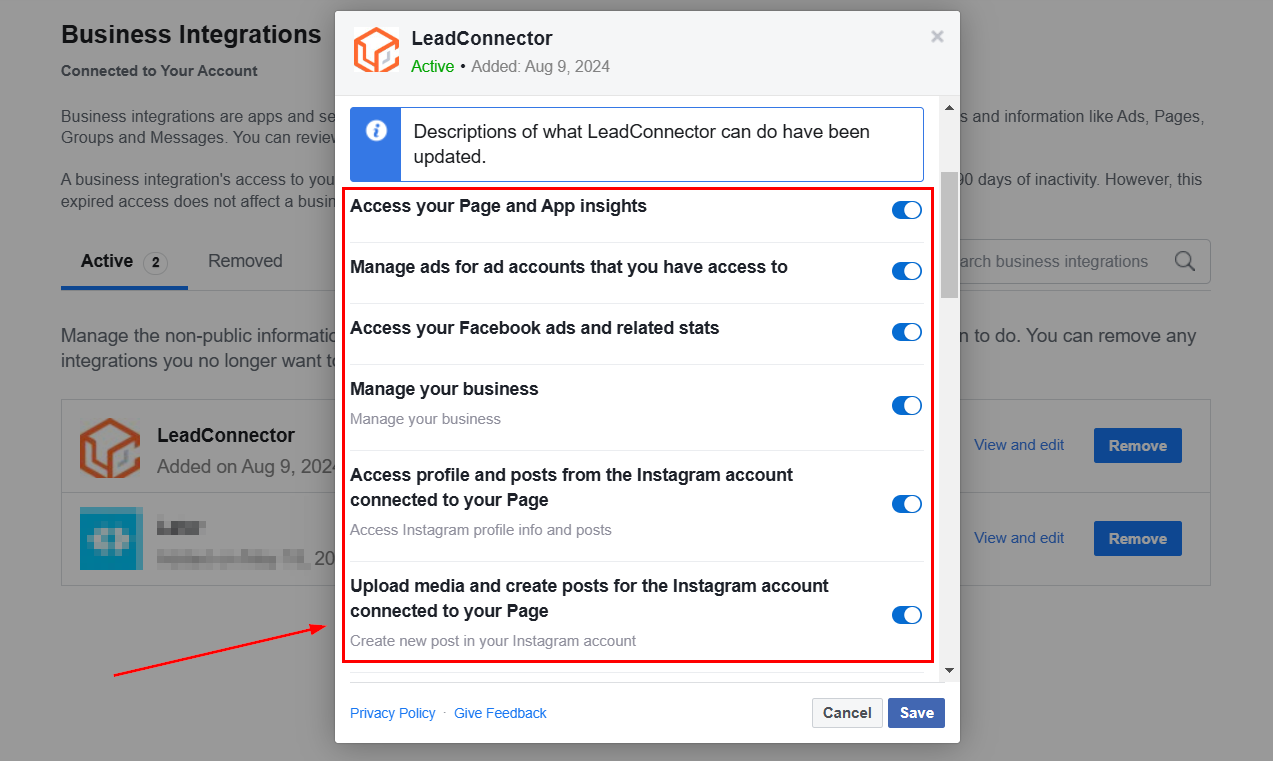 It is important to connect your Facebook account with all of the permissions. If you are trying to connect your Facebook pages with GHL Connector, but some of the pages are missing from the list then you can follow the below guide: