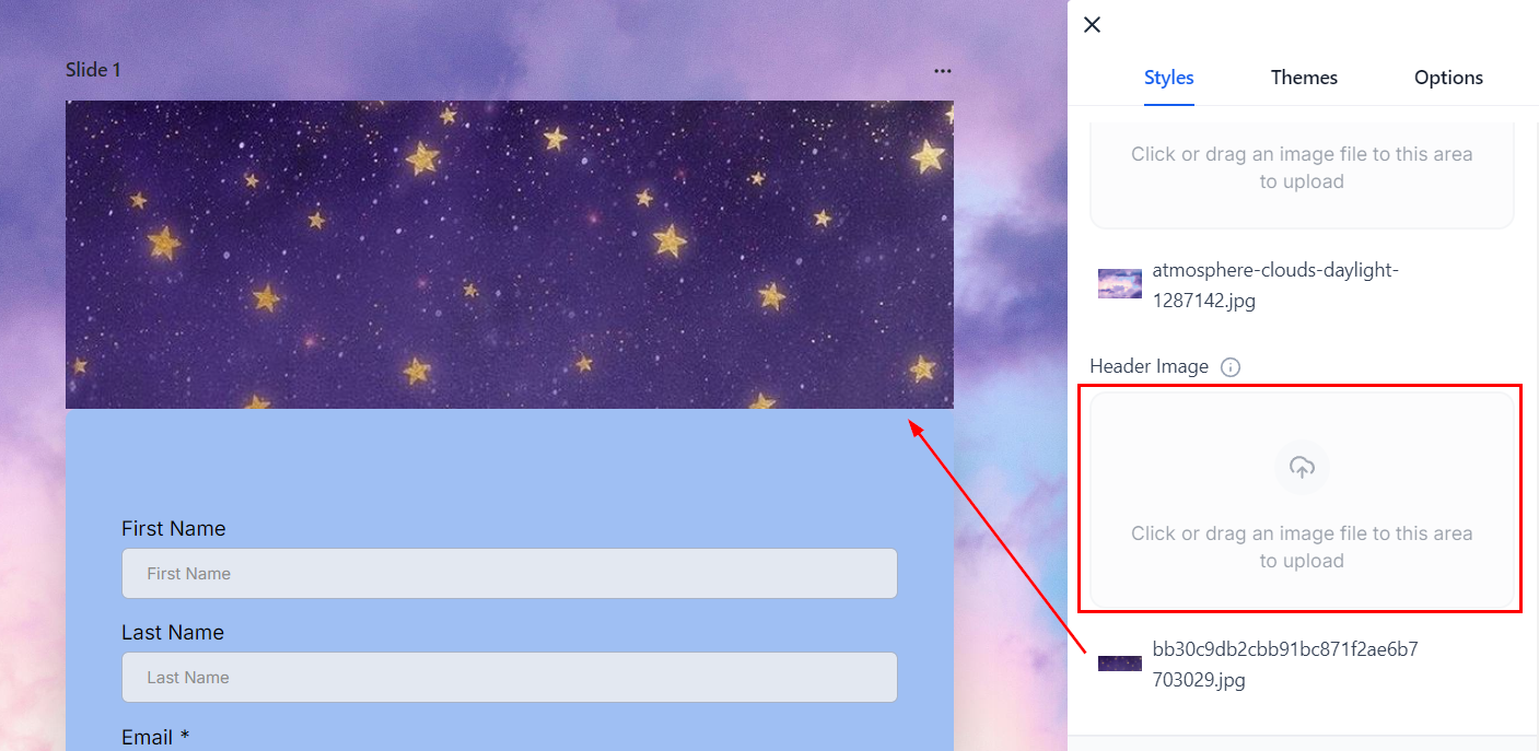 The header image is designed to cover the entire width of the survey and remains positioned at the top of the survey.