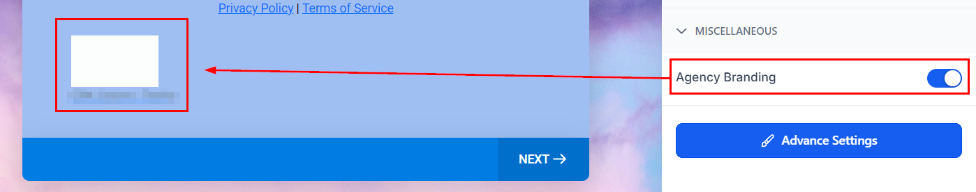 In the Miscellaneous section, toggle on or off the company Branding option to show or remove agency branding at the bottom of your survey. Turning it off allows you to place your survey on a different funnel from the agency's.