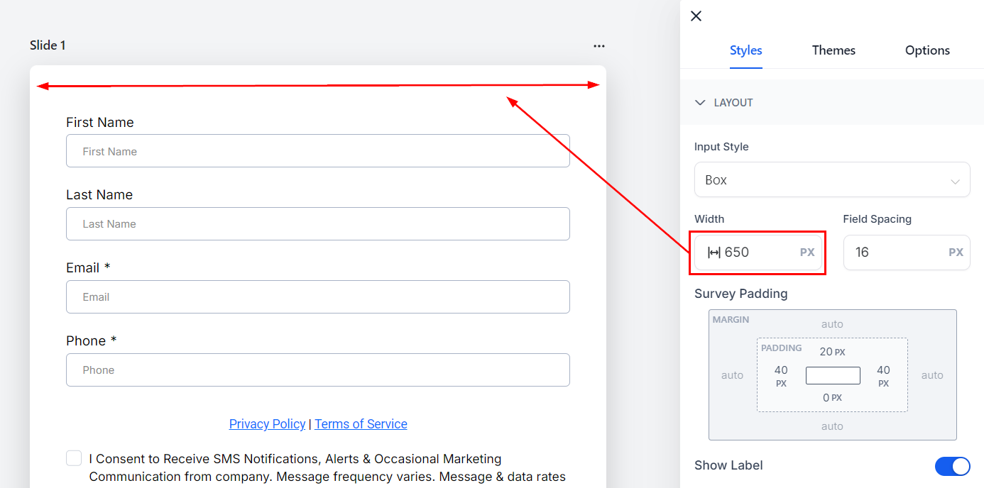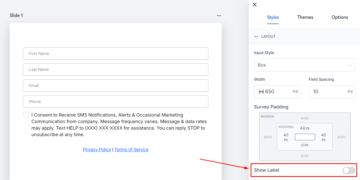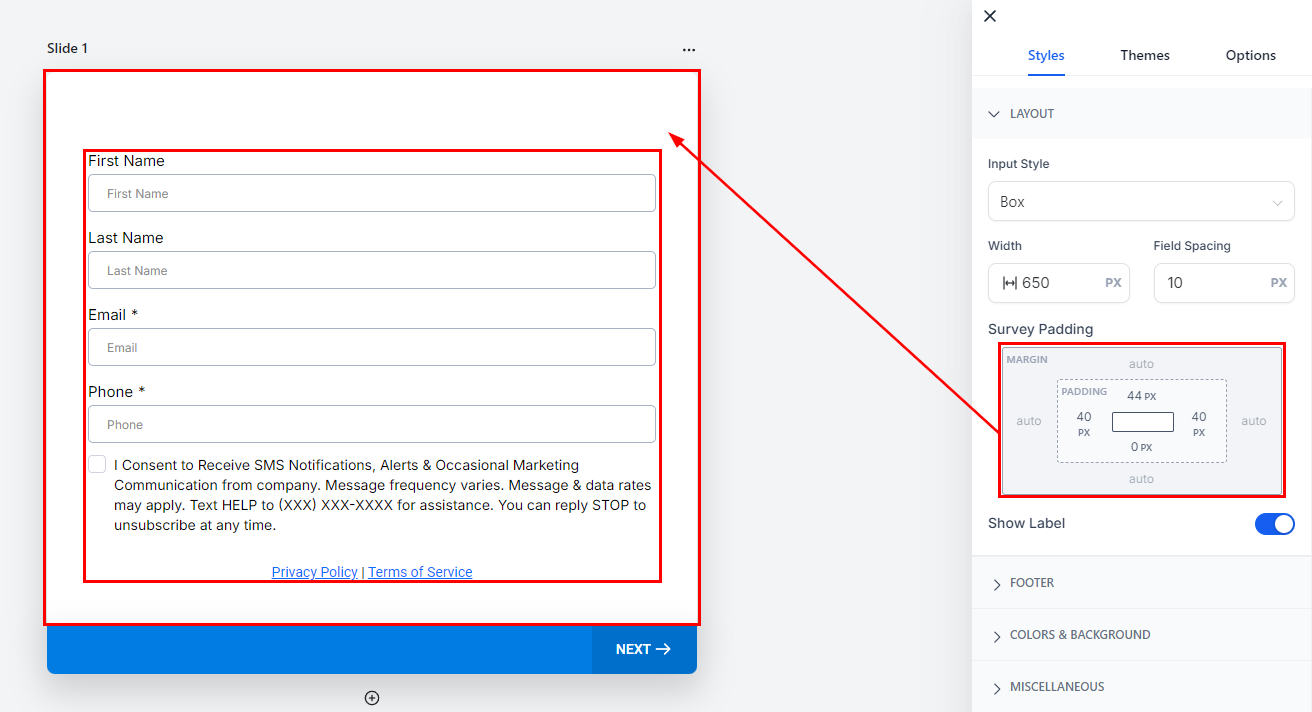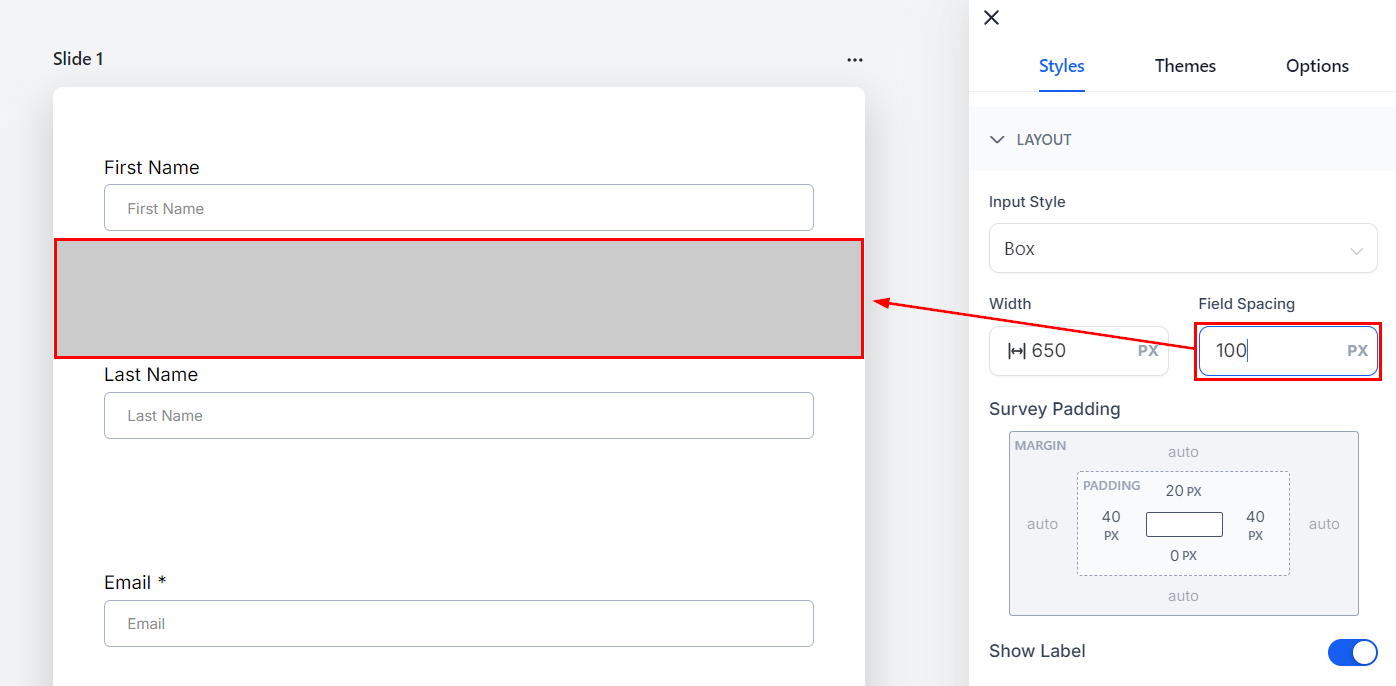 - Field Padding: This adds space between fields to prevent overcrowding in the survey.