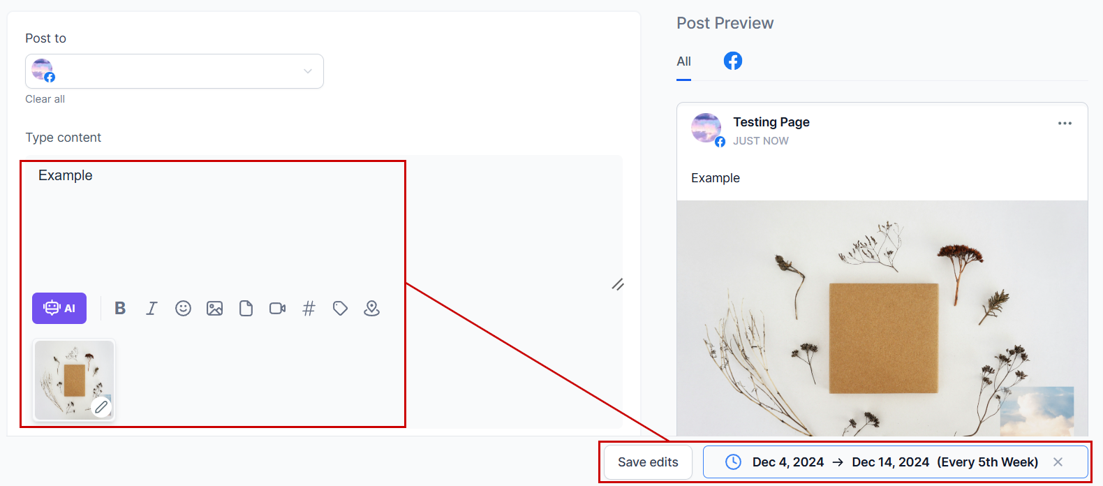 With the Social Planner users can keep a more active presence on social media, one of the tools that will help is the Recurring Post scheduling. This feature allows you to schedule posts at your desired frequency, whether daily, monthly, or yearly, and customize specific days, date ranges, and post times according to your preferences.