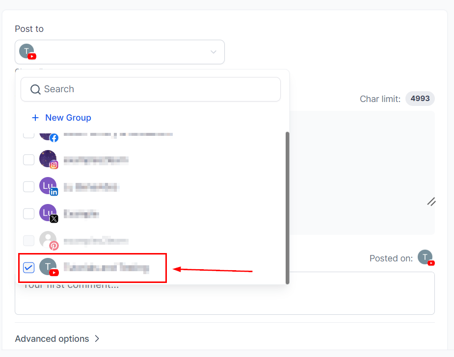 Scroll down to YouTube options, and open the drop-down menu to set the details.
