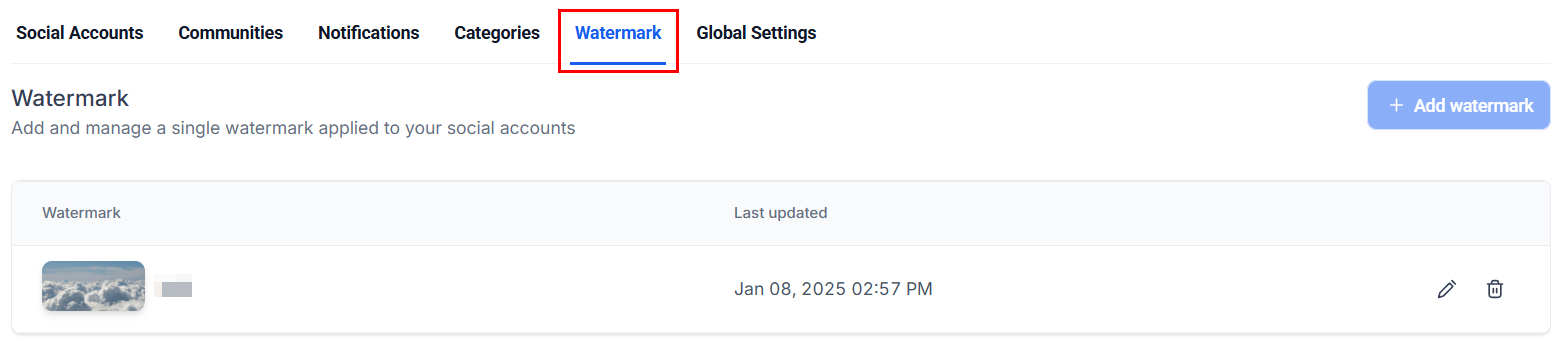 Here, you can add a custom watermark which will be applied to your images or videos before posting them. This feature is useful for branding, ensuring that your content is attributed to you, and protecting against unauthorized use of your media. Customize the watermark's size, opacity, and placement to fit your brand’s aesthetic.