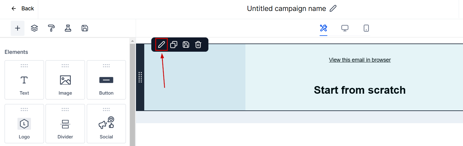 To remove a block, click the trash can button. This option allows you to easily get rid of unwanted blocks while editing your email template.