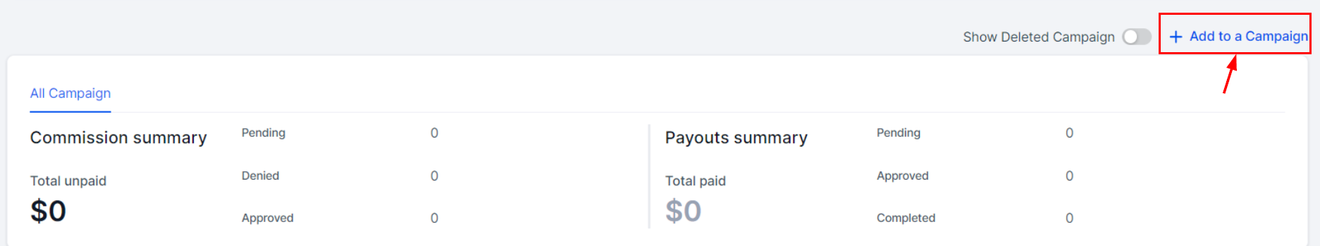 Click on the “Add to a Campaign" button to add an affiliate to a campaign.