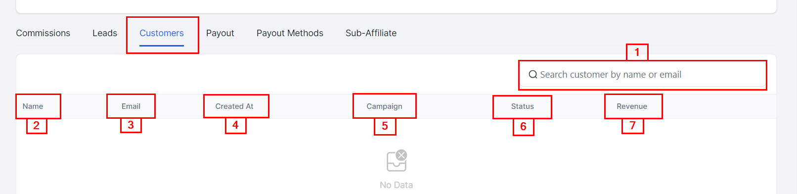 - Name: You will see the names of all Customers assigned to this affiliate.