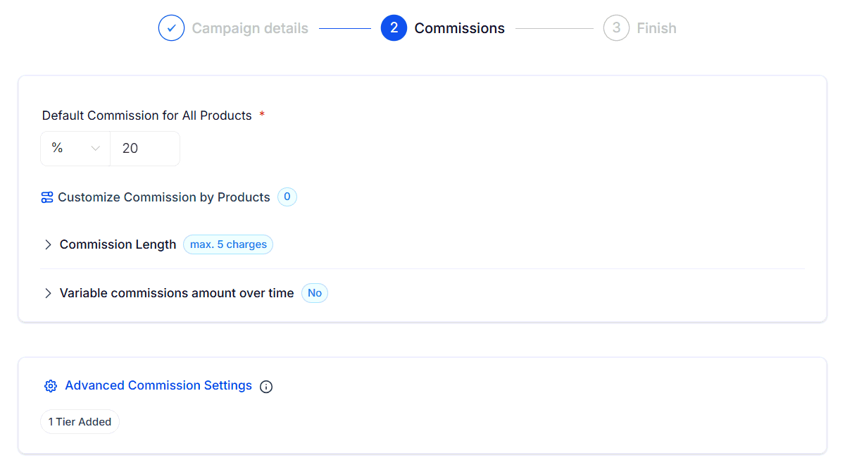 Set multiple tiers for the same affiliate campaign, to divide your affiliates into different earning levels.