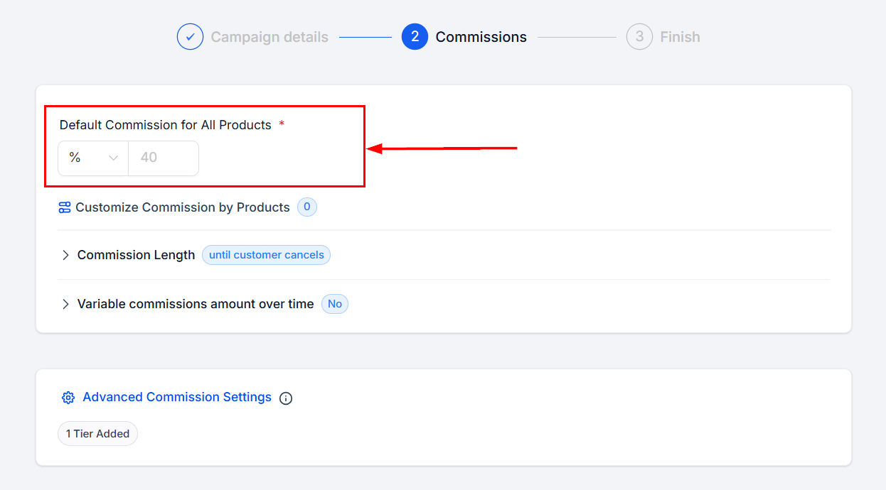 If needed, set up Multiple Tiers under advanced commission settings to further customize the commission structure.