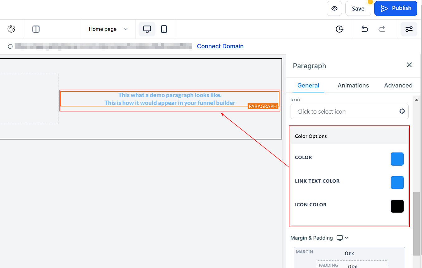 - Icon Color: If an icon is added to this page, you can only edit the icon color here. Only the icon color will change regardless of the position it's placed.