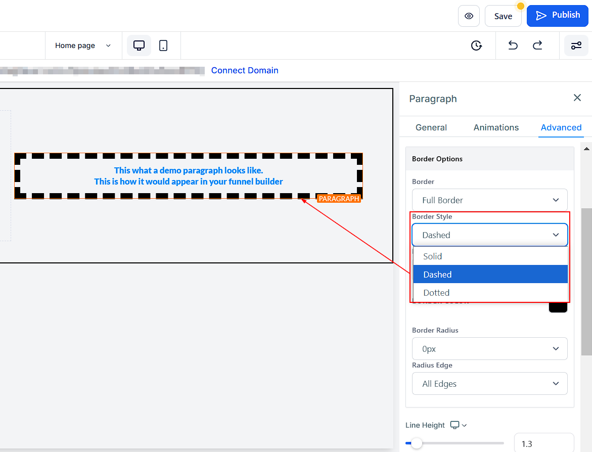 - Border Style: There are three (3) Different styles for your border, It could be a Solid, Dashed, or Dotted border.