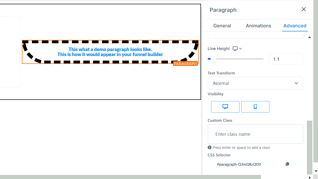 The Paragraph element allows you to add text content to your page, helping to convey information clearly and effectively. Whether you're adding descriptions, instructions, or general content, the Paragraph element provides various customization options to match your site's style and enhance readability.