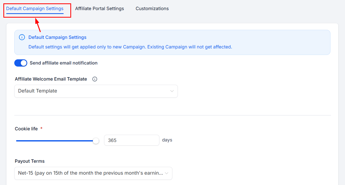Default Campaign Settings refer to the configurations that will be automatically applied to all new campaigns you create.