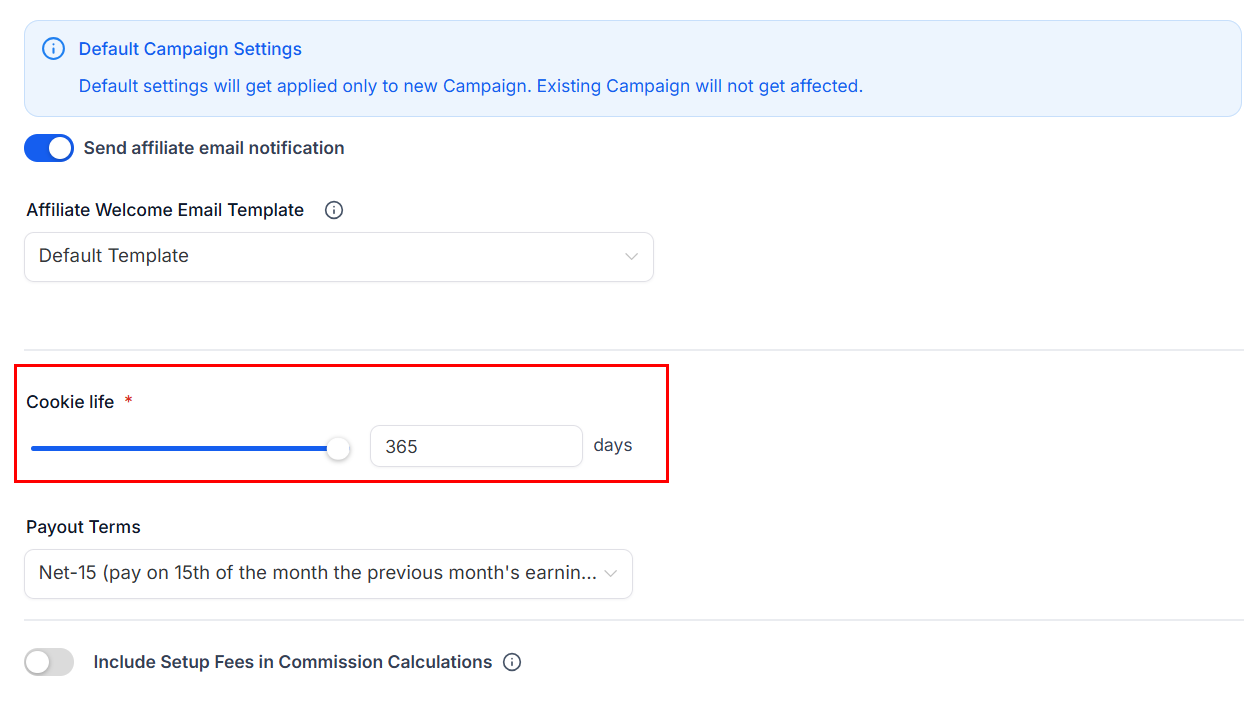 Set the cookie life for each affiliate, which can range from 2 to 365 days. The cookie life refers to the duration that a tracking cookie will remain active on a user's browser after they click an affiliate link. This cookie tracks the user's actions and ensures that any resulting conversions (such as sign-ups or purchases) are attributed to the correct affiliate.