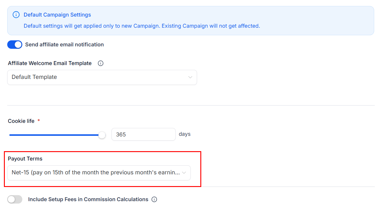 Choose when Affiliate Payouts are issued, providing flexibility in managing your affiliate program's payment schedule.