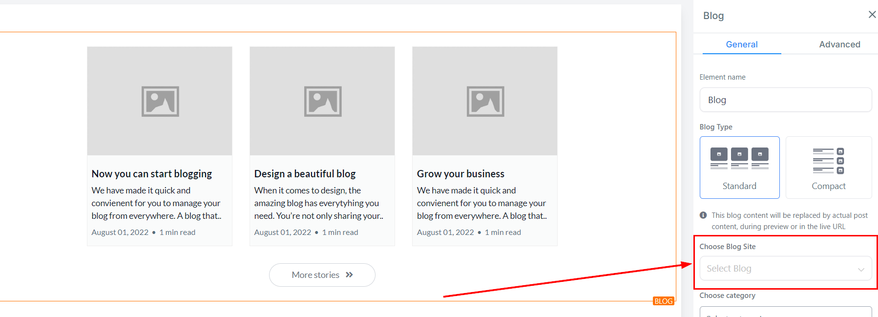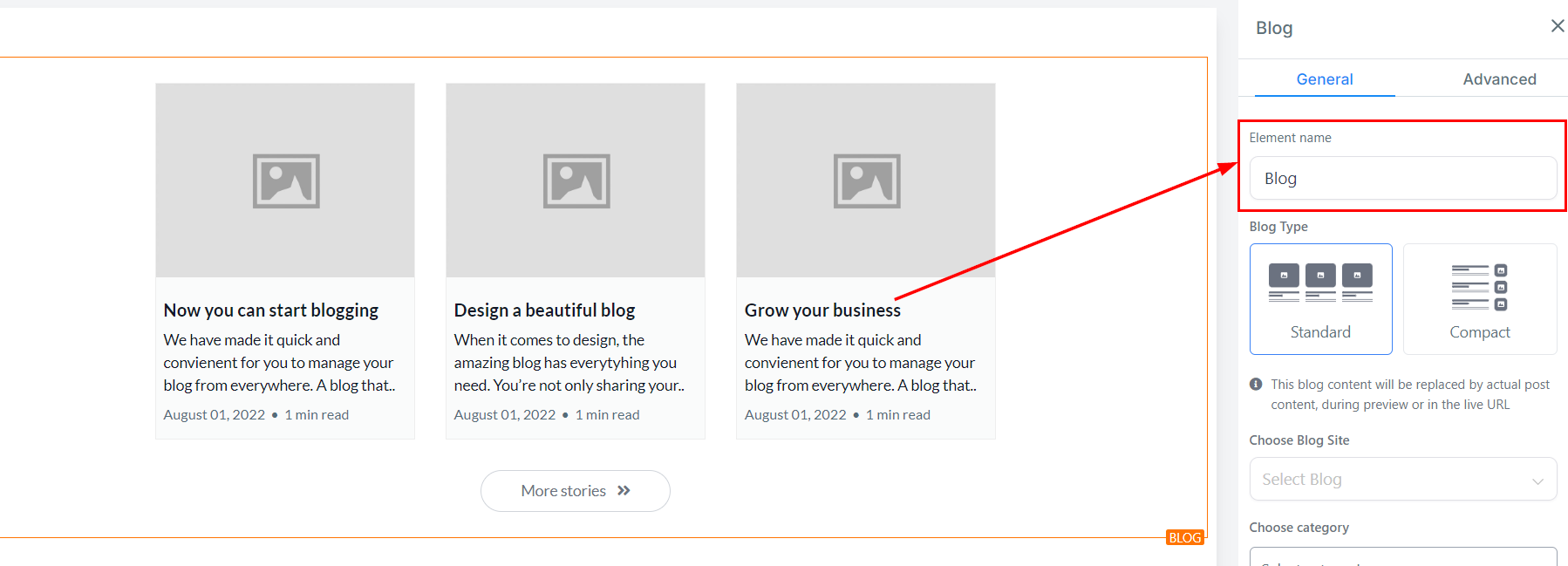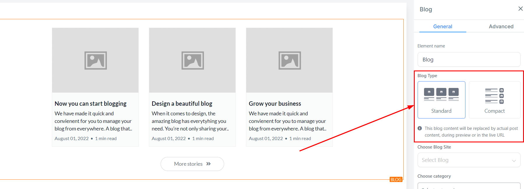 - Standard: You can decide to use the standard type which has the blogs in a Grid View.