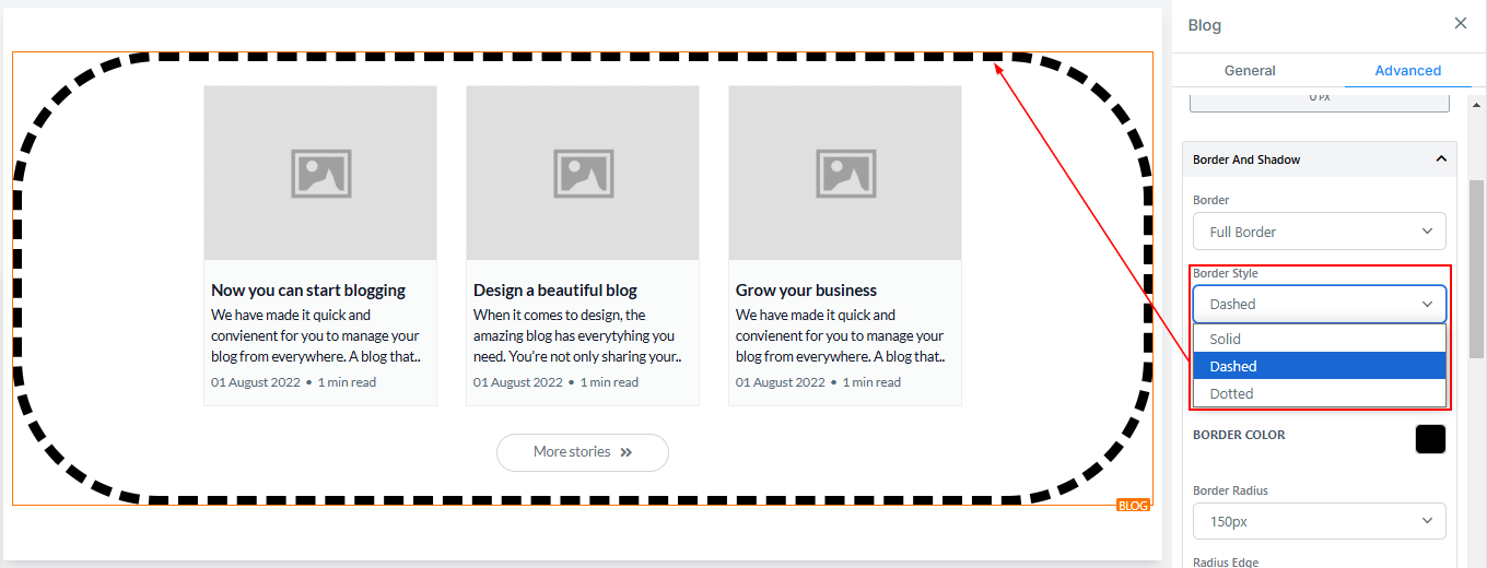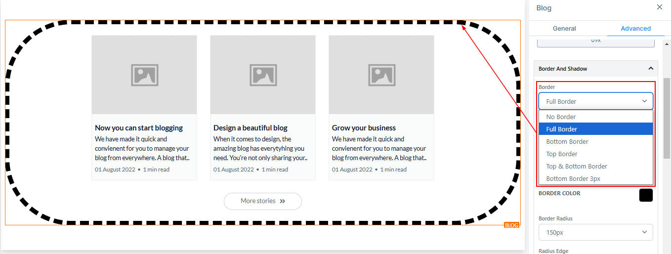 Select your preferred border type from the available options. Upon selection, the editor will adjust to display a preview of the chosen border style.