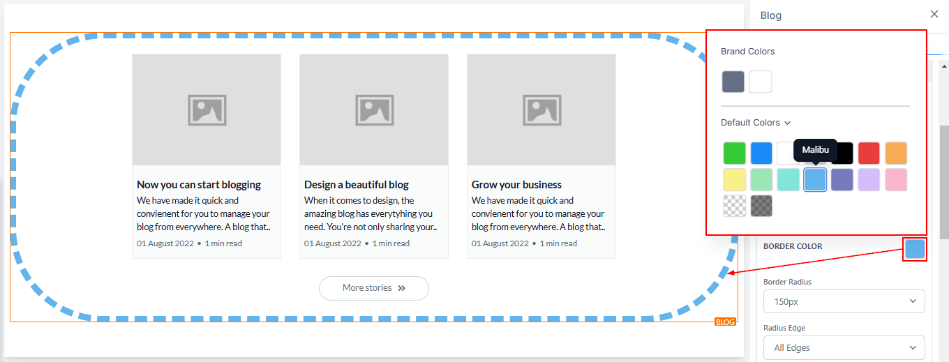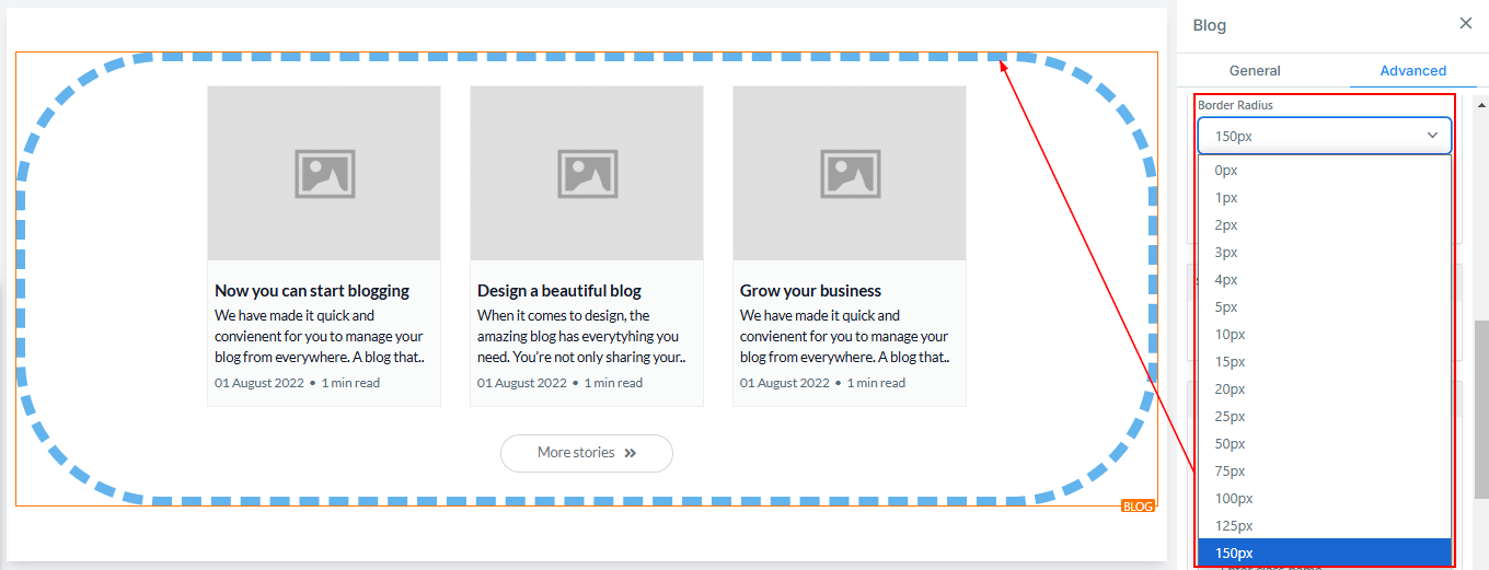 Adjusting the border-radius curves the edges of the border. The higher the value you select, the more pronounced the curvature becomes.