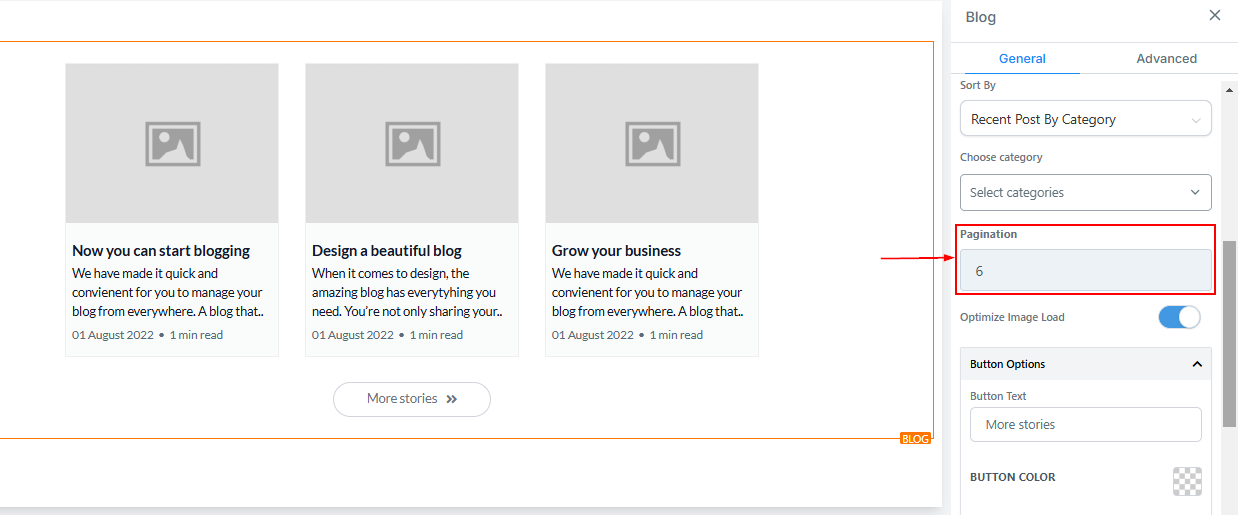 In the Pagination settings, you can choose the number of blog posts to display on each page. While it is recommended to keep this number between six and nine posts, you may adjust it according to your preference.