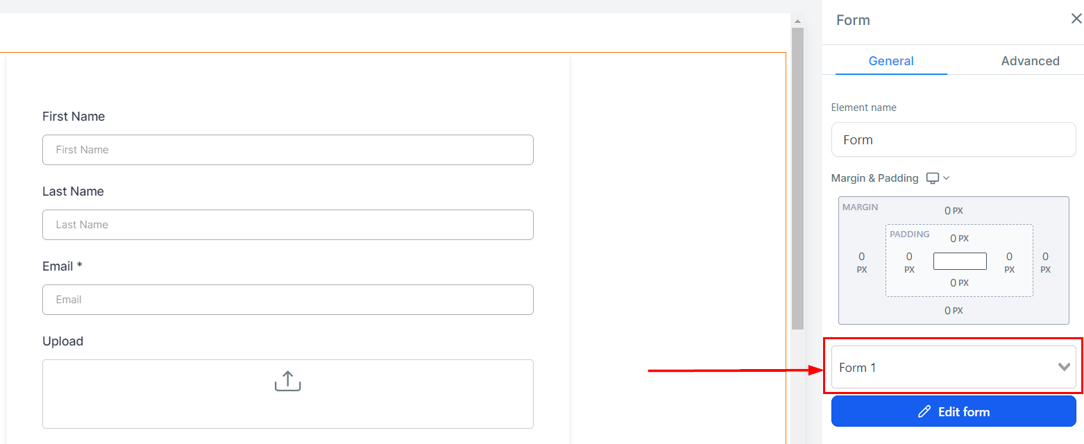 If you need to replace the form you have selected at any time, you can do so in the Form section by selecting an option from the drop-down menu.