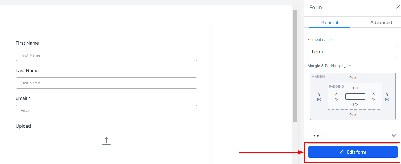 To start, locate the form element and drag it to the preferred position within your editor's workspace. Next, select the form to be added, or create a new form.