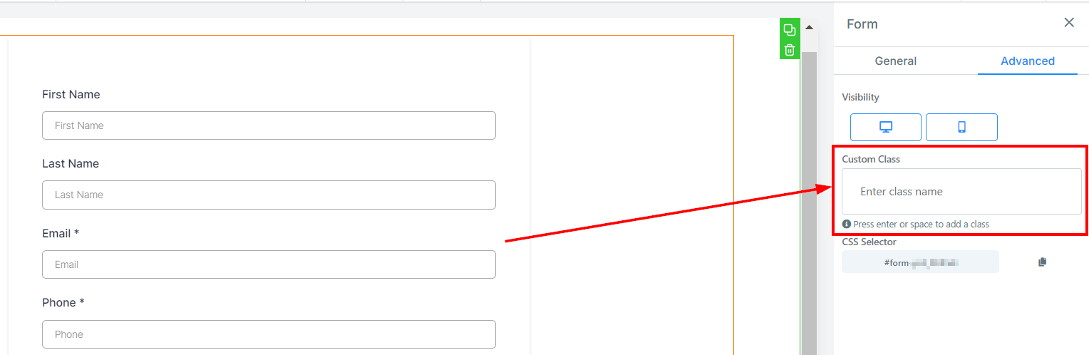 You can add a Custom Class by typing a desired class name in the Custom Class field.