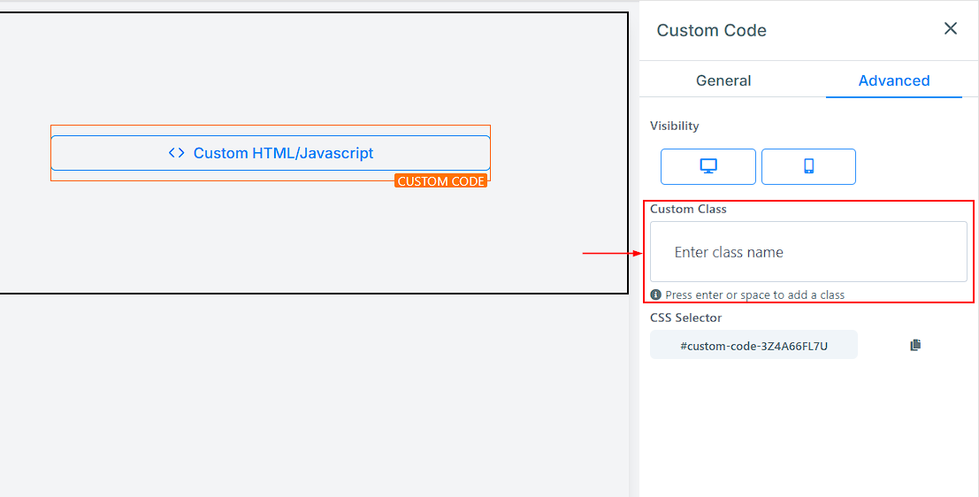 You can add a Custom Class to your web page by inputting your desired class name into the dedicated field. This feature helps you apply custom styles to specific elements of your web page by linking them to style definitions in a stylesheet.